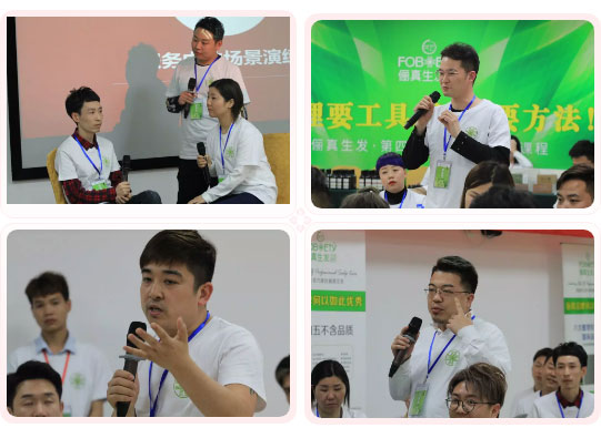 而第二天、第三天的頭腦風暴課程,主要是圍繞頭皮健康管理過程中“服務的對象”“績效面談”“銷售板塊““危機處理”四大主題開展了環(huán)環(huán)相扣的講解和場景演練。