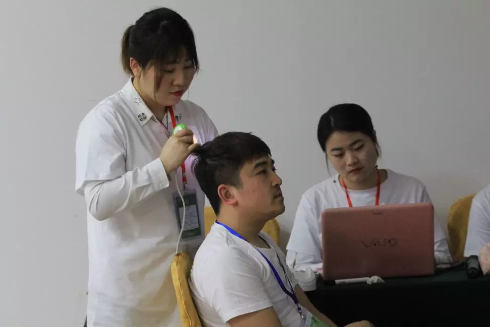使用儷真產品后·頭皮檢測! 現場對使用儷真洗發(fā)水的學員頭皮進行監(jiān)測, 自帶油性發(fā)質和頭皮屑較多的學員, 使用儷真洗發(fā)水后的頭皮非常健康, 發(fā)根毛囊干凈完整, 發(fā)質強韌有光澤且沒有頭皮屑。